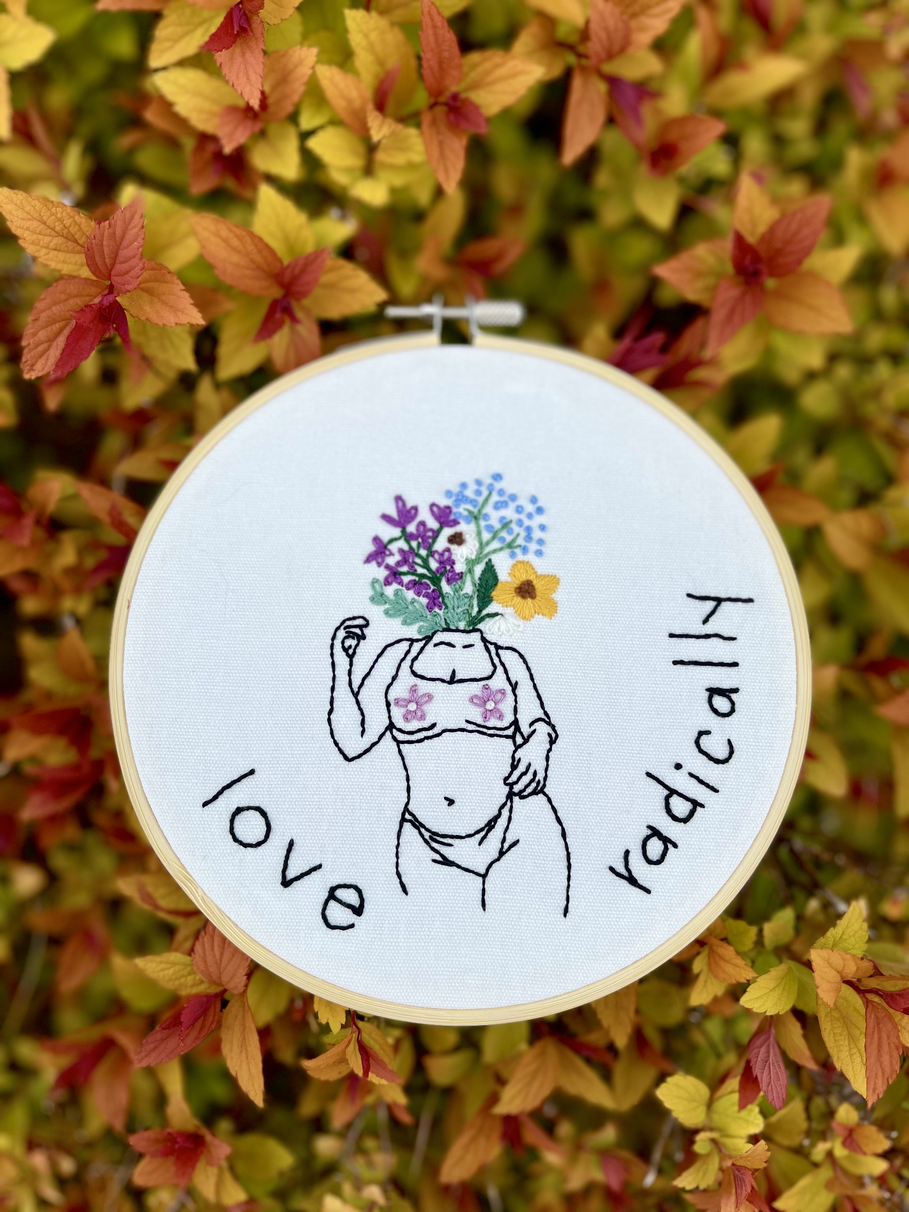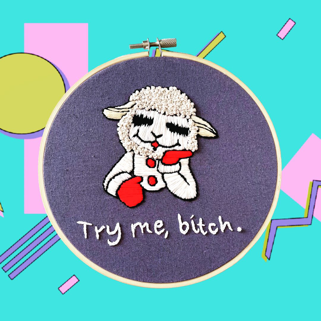 Custom hand-stitched embroidery and cross-stitch. Specializing in modern, subversive, and meme hoops, in addition to custom portraits.